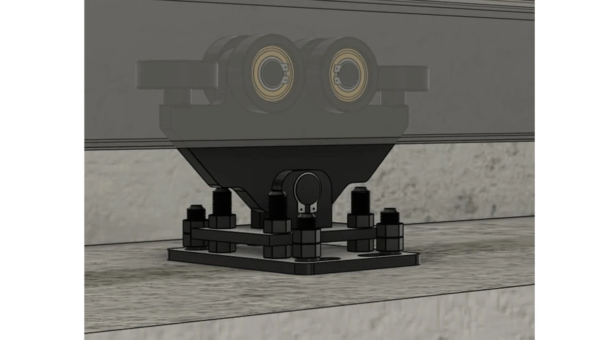 Imaginea prezintă modul în care este fixat pe beton unul dintre cărucioare, fiind necesar ca prinderea să se facă pe beton.